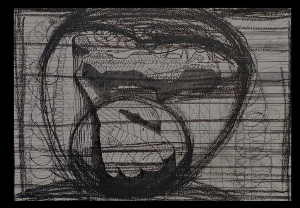 The Monkey and the Lady-Coal,Fineliner on Paper 2023