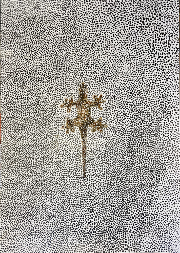 Gecko in a Snowstorm-60×40 Acryl on Paper 2024